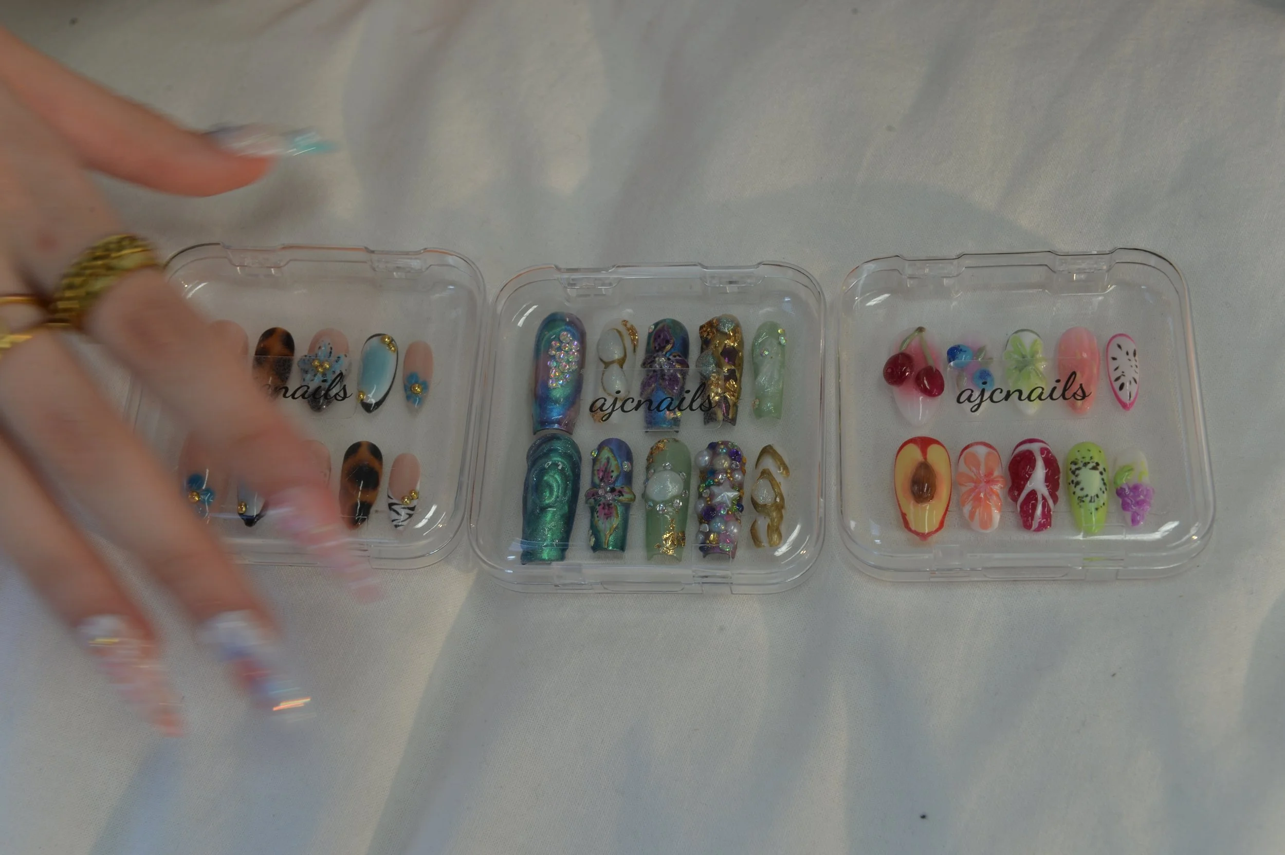 Shop Categories: All Custom Pre-made All | Custom | Pre-made | B2G1 FREE $0.00 rush order $20.00 custom- extreme + $150.00 custom- extreme $115.00 Custom- complex $85.00 custom- intermediate $65.00 fruit punch $85.00 cosmic garden $110.00 Rapunzel glow $120.00 Sea shimmer $95.00 custom-simple $45.00